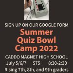 CMHS Quiz Bowl is excited to announce the first annual Caddo Magnet Summer Quiz Bowl Camp! Rising 7th, 8th, and 9th graders are invited to…