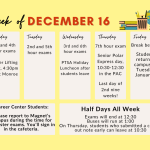It’s the final week of the fall semester, and midterms are this week! Each day, Monday through Thursday, is a half day for students. Exams…